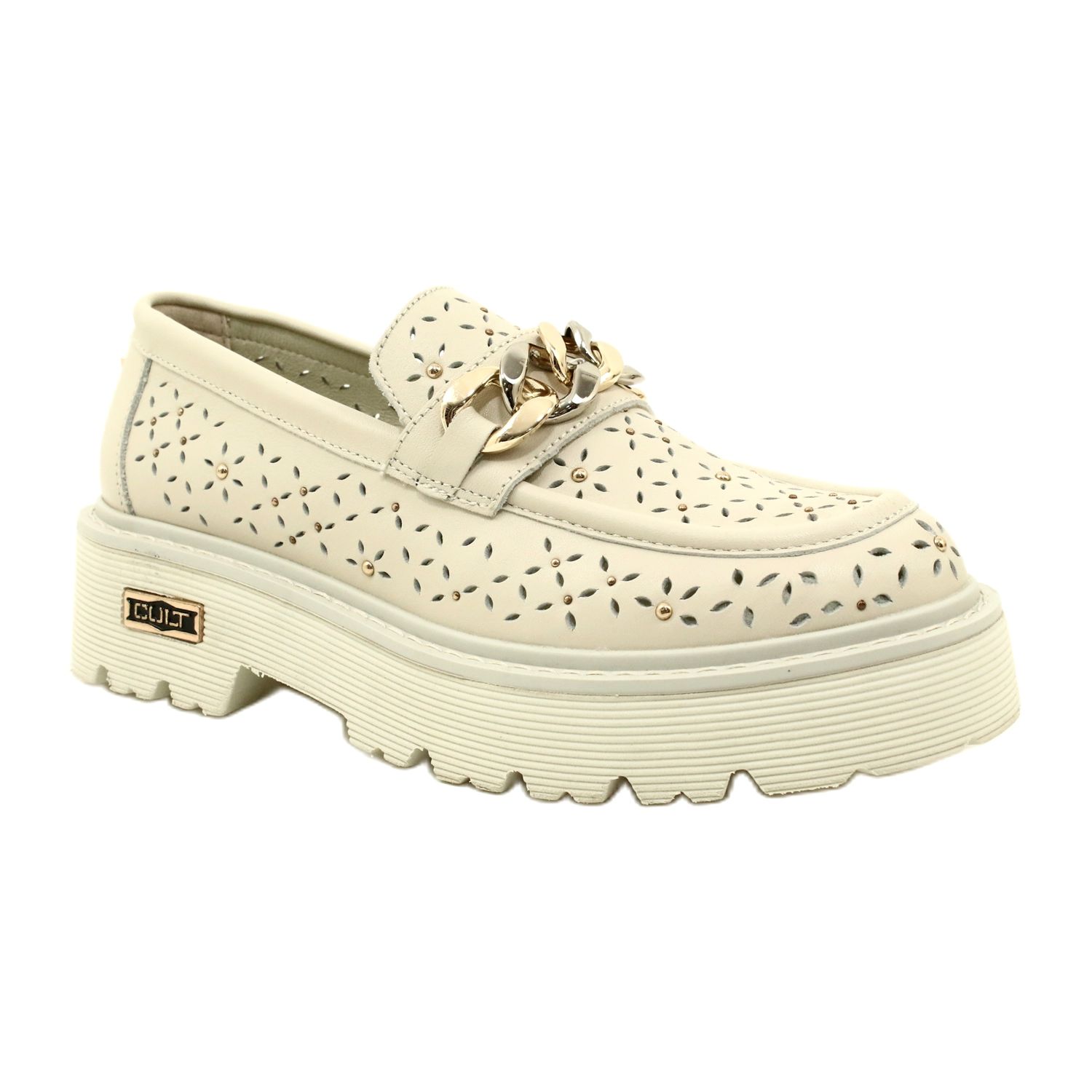 Detalii: Piele deschise din piele Openwork pentru femei pe platformă cu decorare CLW319405 BEIGE bej