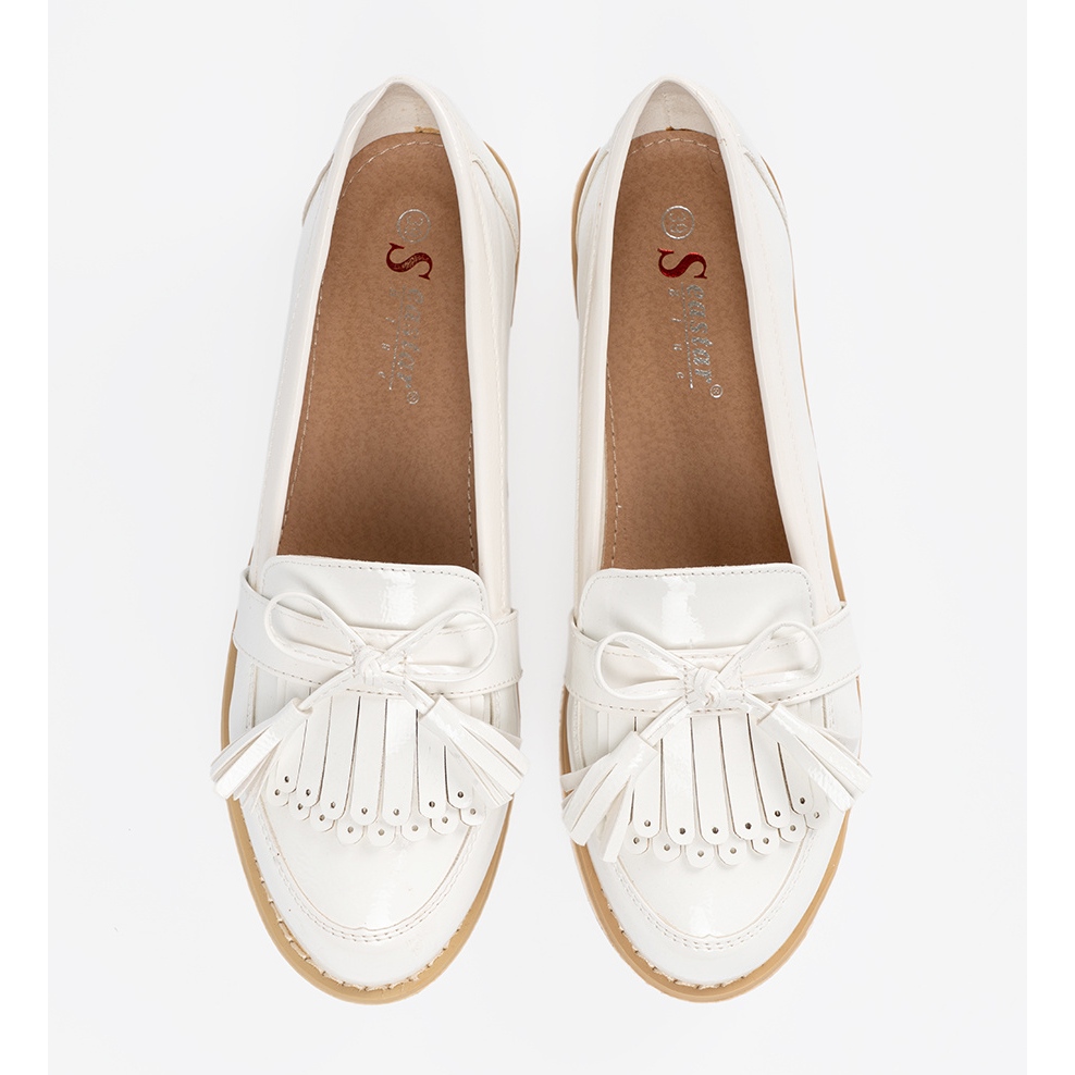 Fabricate din piele organică lăcuită de înaltă calitate, aceste mochete nu sunt doar elegante, ci și ușor de îngrijit. Nasul rotund și tăierea completă le fac alegerea perfectă pentru diverse ocazii - de la plimbări zilnice la evenimente mai formale. Elemente suplimentare, cum ar fi arcul și ciucurile, le oferă farmec și un personaj unic, distingându -le de alte modele.