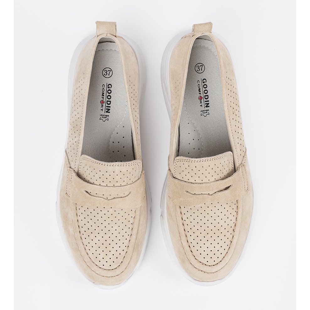 Descoperiți eleganța și confortul cu mocasinele bej pe platformă de la renumitul brand Goodin. Acești pantofi eleganți pentru femei combină designul la modă cu confortul utilizării, ceea ce le face alegerea perfectă pentru orice ocazie.