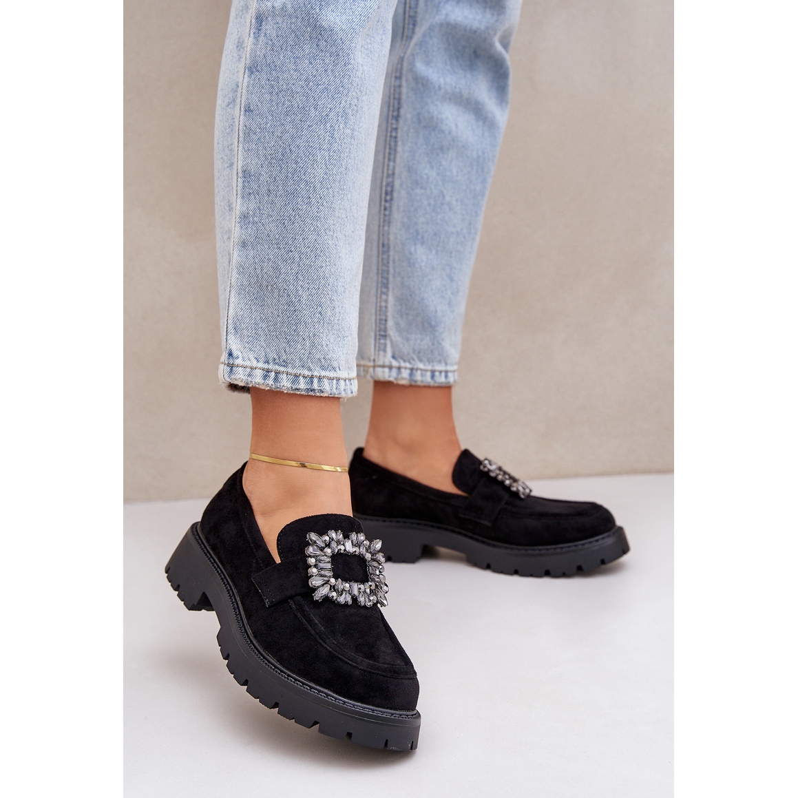 Inna marka Plăcile de femei din Suede Suede cu o broșă decorativă neagră negru