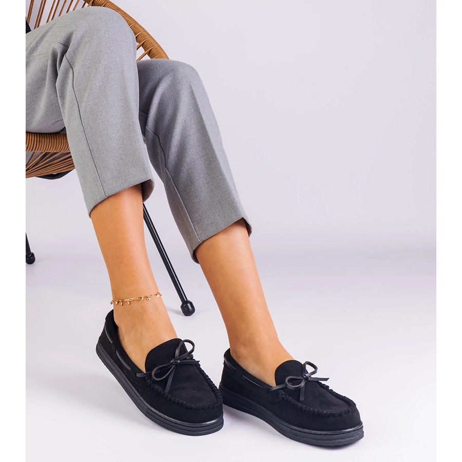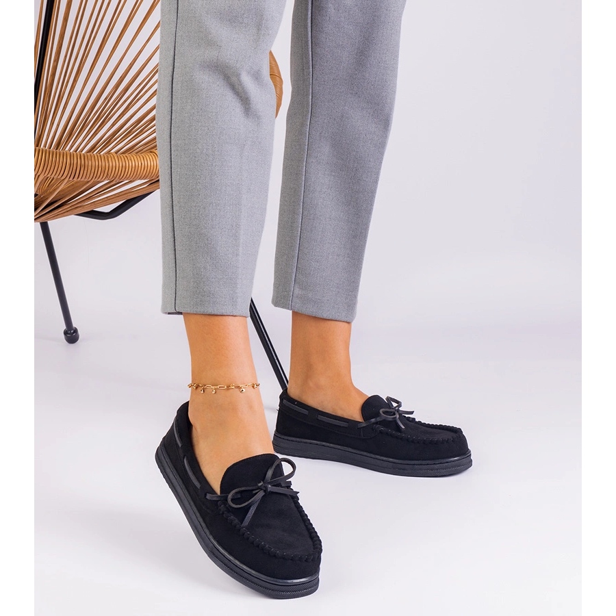 Introduceți o mică eleganță și mângâiați -vă în stilizarea dvs. zilnică, datorită mocasinelor noastre negre ale femeilor noastre din Ekozamsz cu un arc. Aceasta este alegerea perfectă pentru femeile care doresc să combine designul la modă cu confort la fiecare pas.