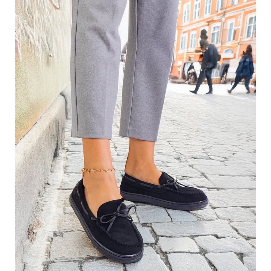 Arcul caracteristic, așezat pe partea din față a mocasinilor, le oferă un farmec unic și un caracter feminin. Indiferent dacă mergeți la birou, pentru a vă întâlni cu prietenii sau pentru o plimbare în weekend, aceste mochete vor completa perfect orice stilizare. Culoarea lor neagră universală înseamnă că se potrivesc cu multe ținute diferite, de la elegante la casual.