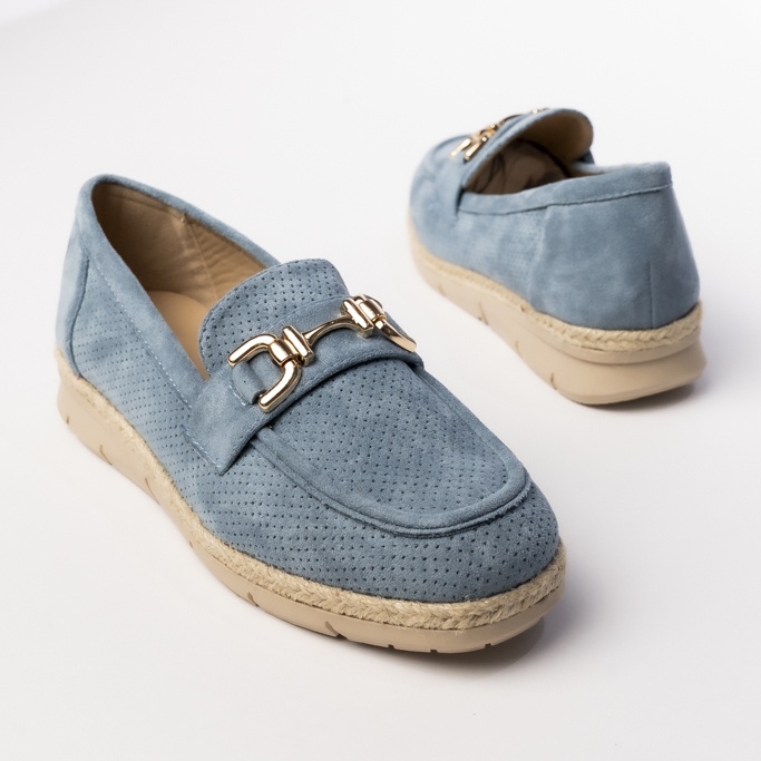 Descoperiți eleganța și confortul cu mocasinele femeilor perforate într -o nuanță albastră. Acești pantofi unici, decorați cu o cataramă de aur, combină un stil casual la modă cu eleganță atemporală, datorită cărora vor fi perfecte atât zilnic, cât și în situații mai formale.