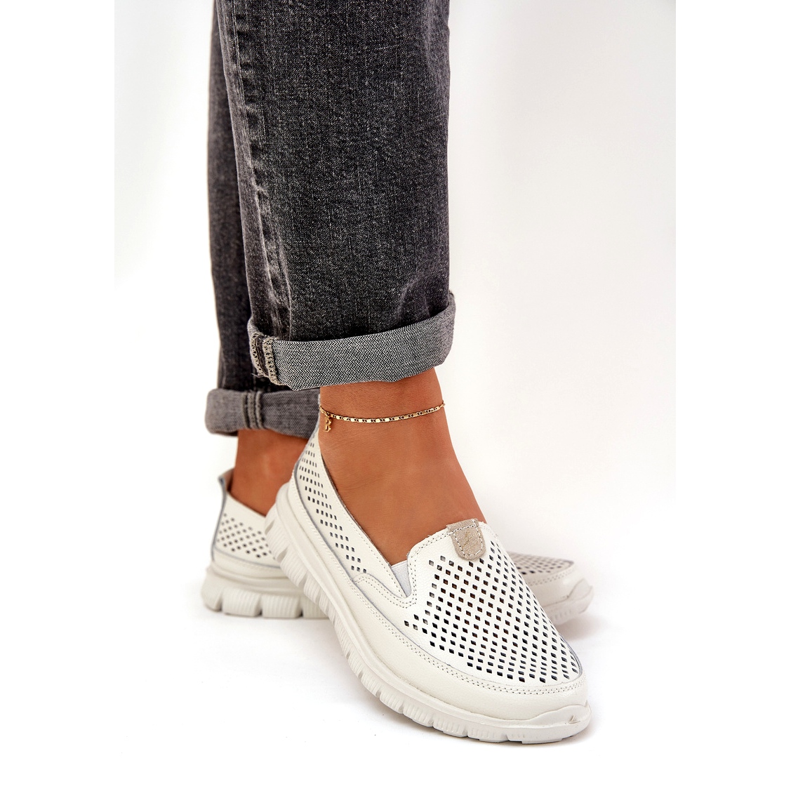 Descoperiți eleganța și confortul datorită Openwork Moccasins Evento 24PB18-6870 într-o culoare albă clasică. Aceste pantofi ușori, pentru femei, din piele naturală, sunt o propunere ideală pentru zile calde, combinând designul la modă cu funcționalitatea. Set pe o platformă stabilă cu o înălțime de 3 cm, acestea oferă nu numai comoditate, ci și un aspect atractiv care va completa perfect stilizările zilnice.