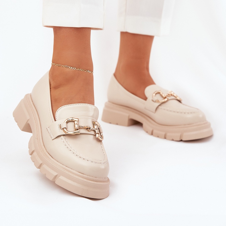 Aceste mochete sunt perfecte atât pentru combinații casual, cât și pentru mai elegante. Datorită inserției, a pune și a scoate pantofii este rapid și confortabil. În plus, culoarea lor bej și o talpă montată formează un întreg armonios care se poate încadra cu ușurință în orice garderobă.