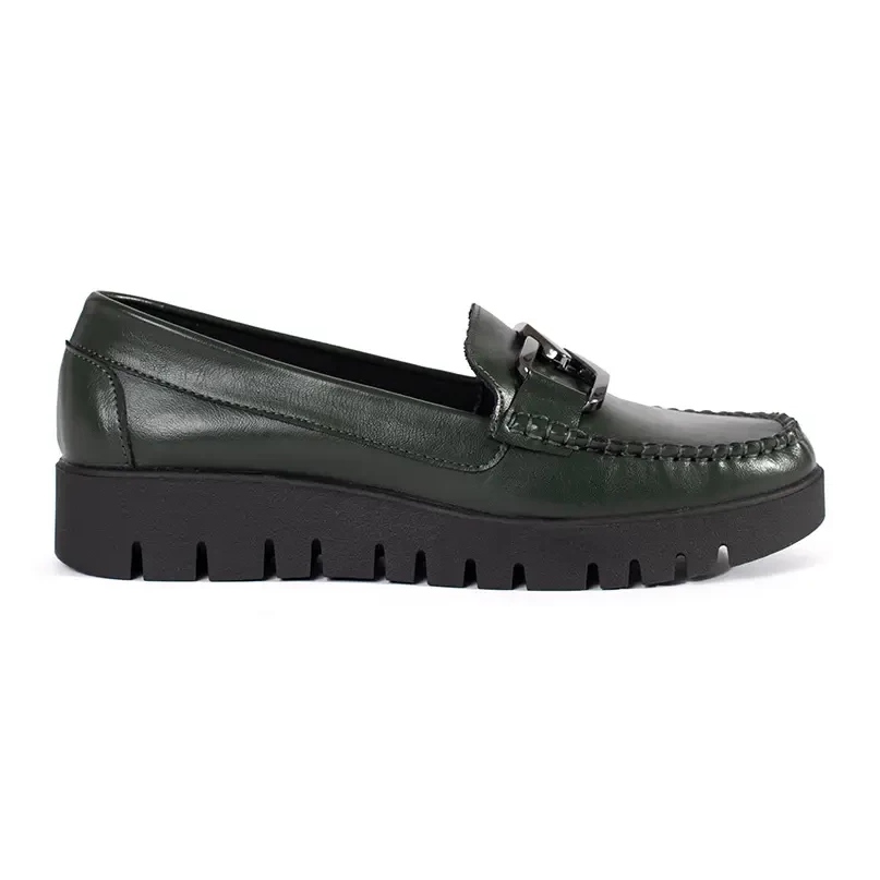 Datorită tăierii introduse, a pune și a îndepărta aceste mocasine este rapid și cu probleme, ceea ce le face alegerea perfectă pentru femeile active. Culoarea verde închis merge perfect atât în straturi de primăvară, cât și de vară, și în combinații de toamnă.
