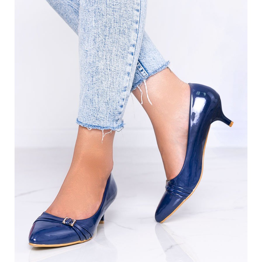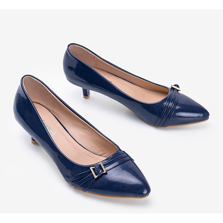 Inna marka Pompă albastru marin pe toc Aurora cu toc mic