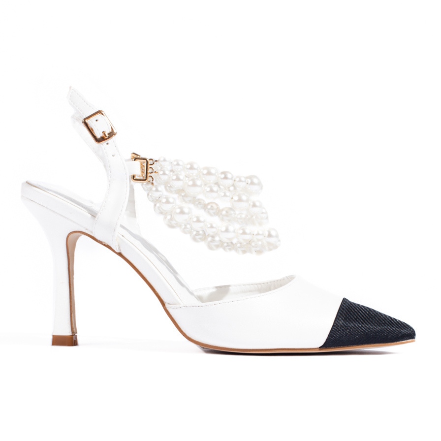 Pompi stiletto albi cu perle Shelovet - eleganta rafinata si design atemporal