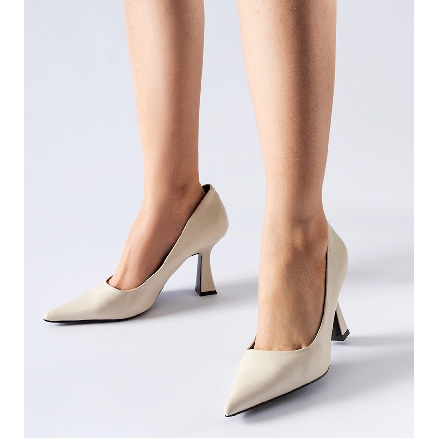 Pompele bej cu toc asimetric Tore bej sunt un model unic de încălțăminte care a fost creat pentru femeile care prețuiesc eleganța combinată cu confortul, mai ales în zilele calde. Aceste pompe cu designul lor de vară răspund tuturor așteptărilor - sunt la fel de perfecte pentru întâlniri formale de afaceri și pentru ocazii mai puțin formale, cum ar fi cine romantice sau întâlniri cu prietenii.