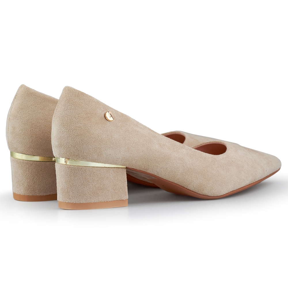 Pompele cu toc jos bej sunt alegerea perfectă pentru femeile care apreciază atât confortul, cât și eleganța. Confectionati din piele intoarsa ecologica de inalta calitate, acesti pantofi imbina stilul si grija pentru mediu. Culoarea clasică bej le face să se potrivească cu multe stiluri diferite, atât pentru uzul de zi cu zi, cât și pentru ocazii mai formale.