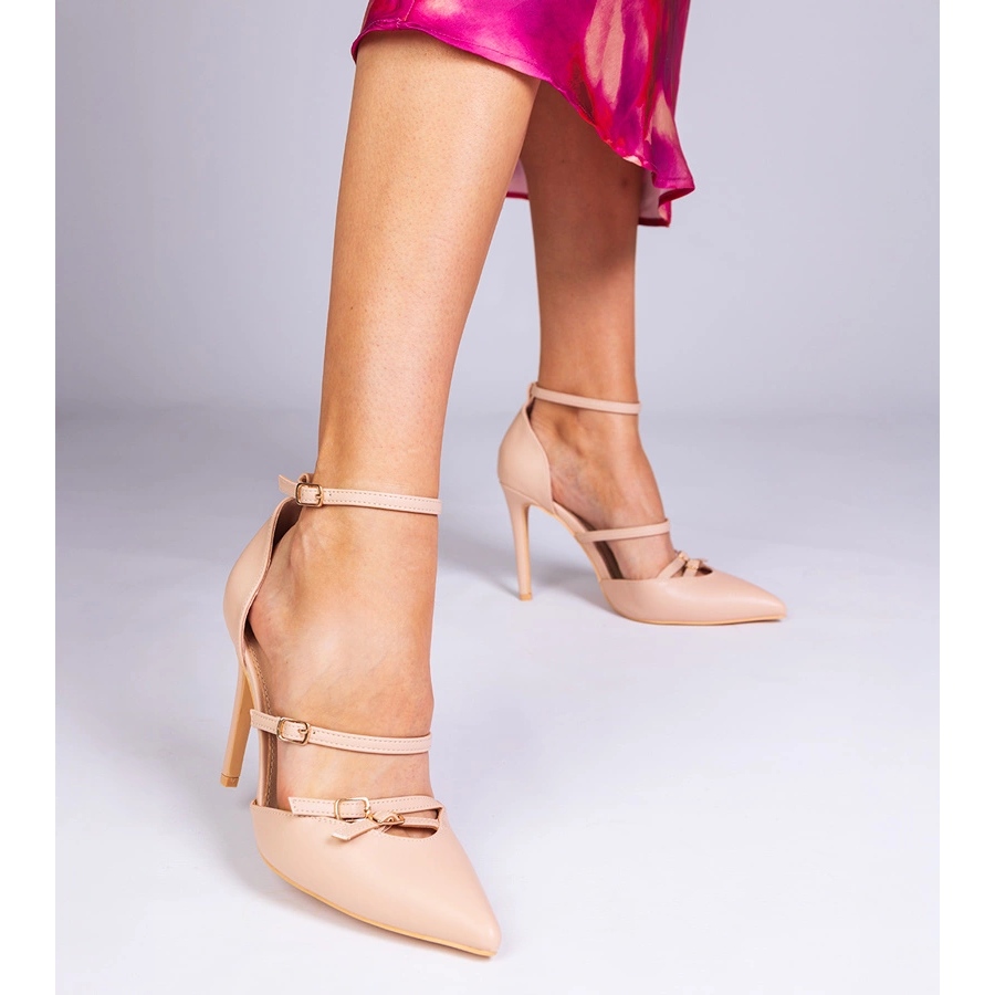 Detalii: Pompe bej pe un călcâi înalt fixat în jurul gleznei
