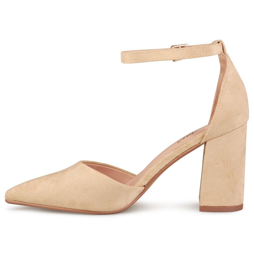 Detalii: Pompe bej pe un stâlp prins la gleznă
