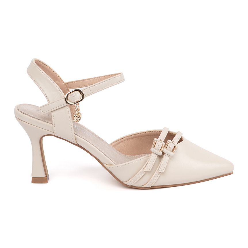 Interiorul pompelor este căptușit cu piele naturală, ceea ce asigură o potrivire perfectă a piciorului și confort chiar și în timpul utilizării intensive. Detaliile la modă, cum ar fi un deget deschis și o cataramă, oferă pantofilor un personaj unic, care va atrage cu siguranță aspectul.