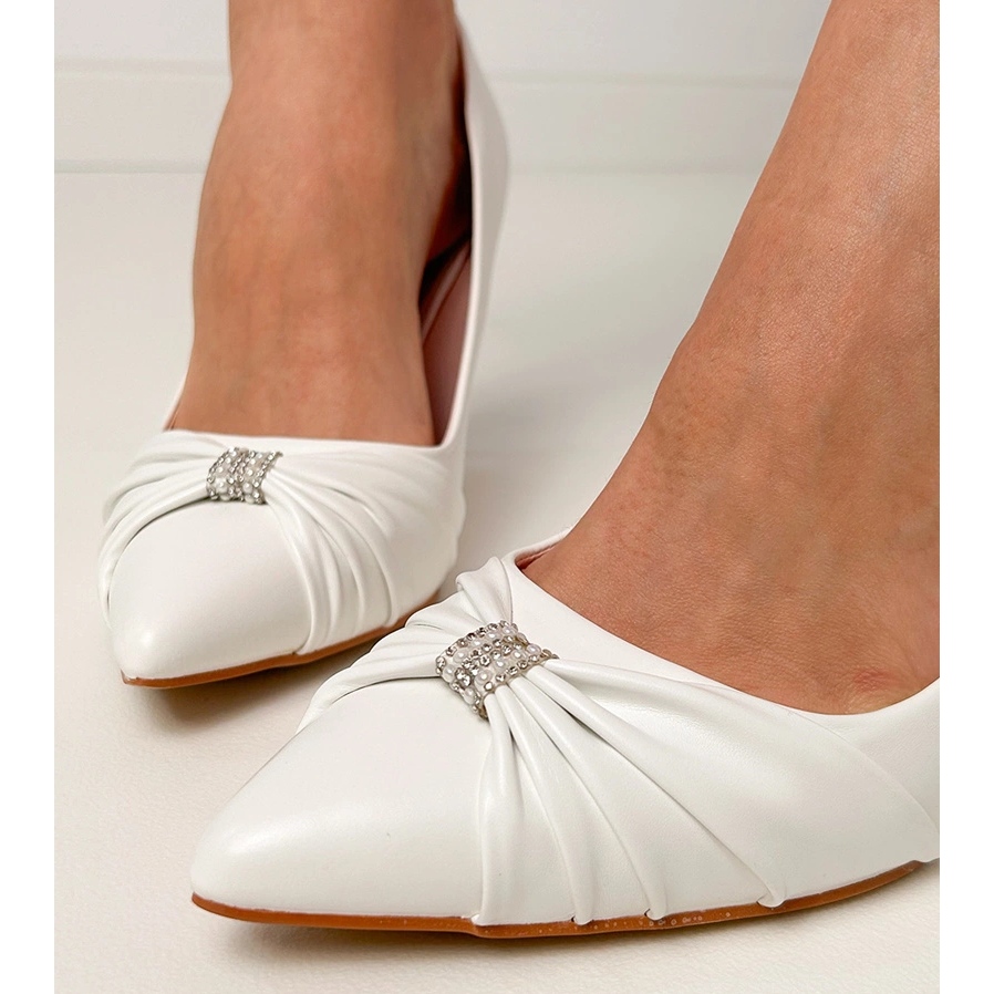 Detalii: Pompe clasice albe pe un știft cu zirconi