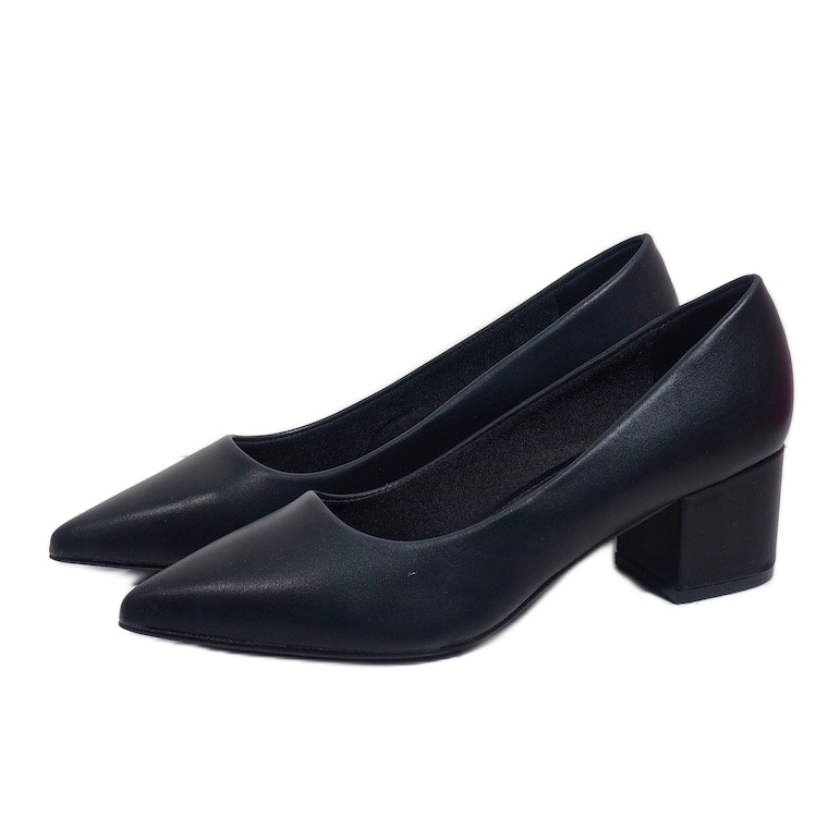 Un toc înalt de 5 cm montat pe un stâlp solid asigură stabilitate și confort de purtare pe tot parcursul zilei. Datorită acestui fapt, pompele sunt perfecte atât pentru birou, cât și pentru ieșirile sau petrecerile de seară. Designul slip-on le face ușor de îmbrăcat, iar culoarea lor neagră universală le face să se potrivească cu multe stiluri diferite - de la rochii elegante la blugi casual.