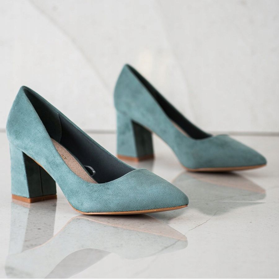 Pompele sunt confectionate din piele intoarsa ecologica, ceea ce le face nu numai atractive din punct de vedere vizual, ci si prietenoase cu mediul. Designul subțire cu vârf rotunjit și toc bloc stabil de 7 centimetri asigură un aspect proaspăt și elegant, precum și confort chiar și în timpul purtării pe termen lung.