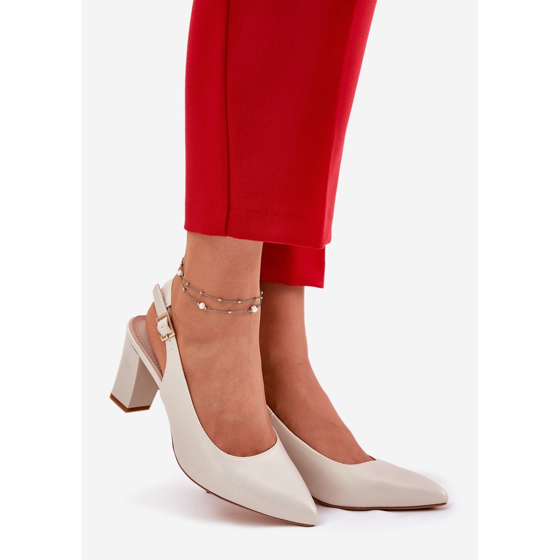 Aceste pompe sunt încorporate pe un post stabil de 7,5 cm, care oferă suport și confort adecvat atunci când purtați. Datorită centurii reglabile cu o cataramă, le veți potrivi perfect cu piciorul dvs., iar călcâiul deschis vă va oferi ușurință și prospețime în stil.
