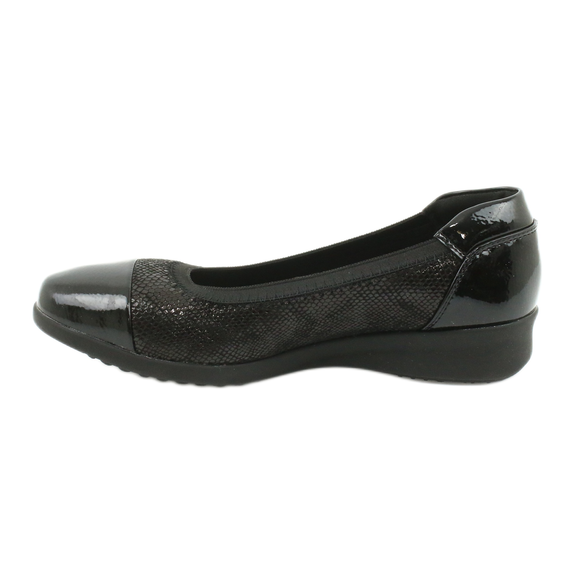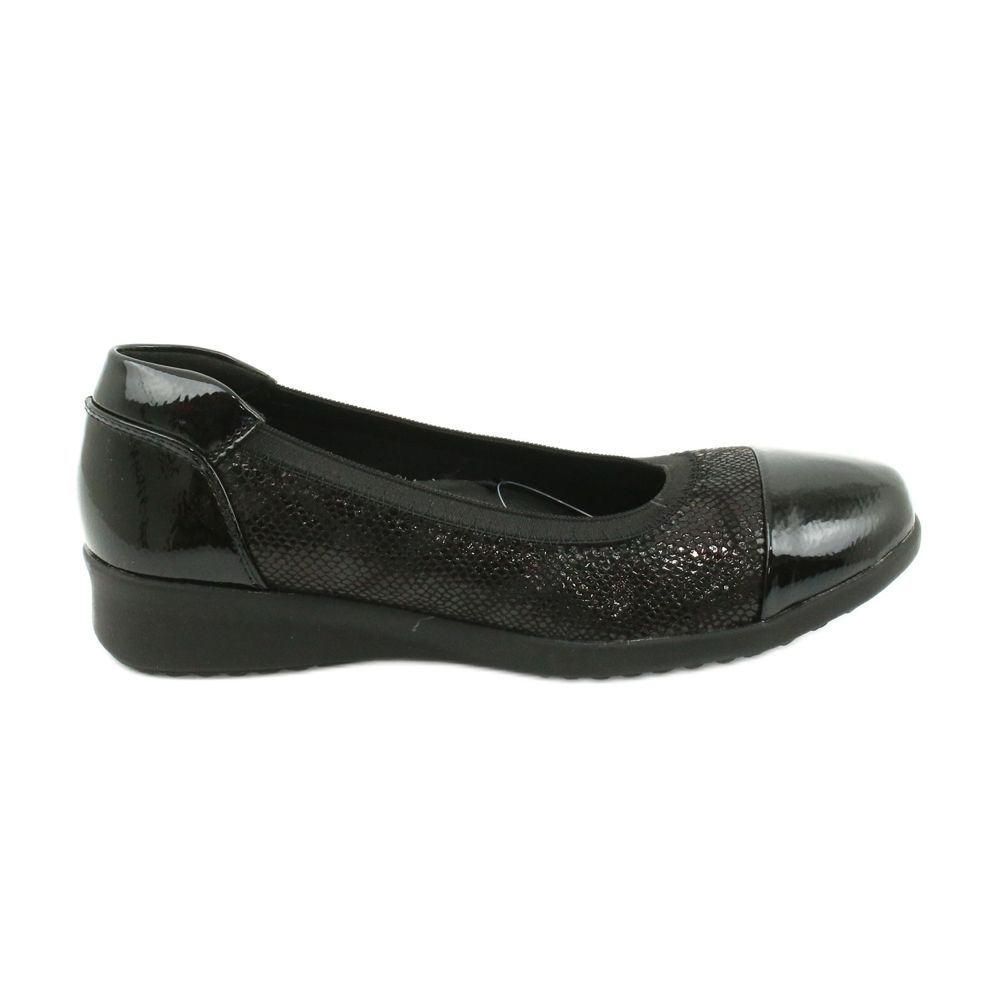Modelul 20PB12-3109 se remarcă și printr-o inserție din piele moale, care asigură confort chiar și pentru ore lungi. Varful rotund si inchiderea cu alunecare fac pantofii usor de incaltat si scos. În plus, finisajul lăcuit le oferă un aspect la modă și elegant.