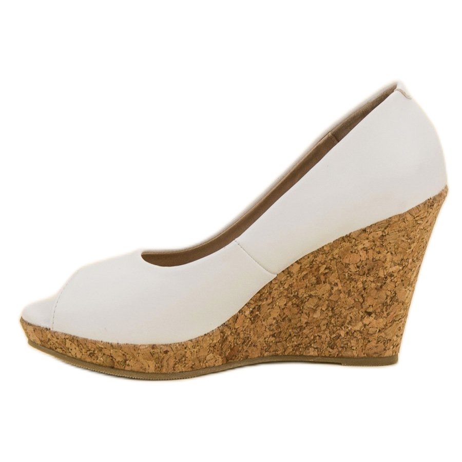 Pompele cu pană VICES Open Toe în alb sunt o alegere ideală pentru femeile care apreciază stilul, confortul și feminitatea. Înălțimea panei lor de 10,5 cm îi face să alungească optic picioarele, iar datorită formei slip-on, încălțarea și scoaterea pantofilor este extrem de ușoară.