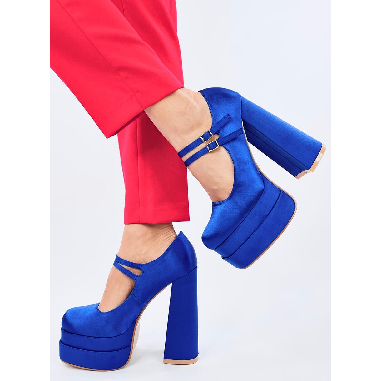 Vă prezentăm pantofii cu platformă din satin într-o nuanță încântătoare de albastru, care sunt alegerea perfectă pentru femeile care vor să iasă în evidență din mulțime. Acești pantofi eleganți combină designul modern cu cea mai înaltă calitate a manoperei, ceea ce înseamnă că cu siguranță vor atrage atenția multor oameni. Un toc înalt de 14,5 cm și o platformă înaltă de 5 cm fac picioarele tale să arate uimitor de lungi și de subțiri, iar confortul purtării este un avantaj suplimentar.