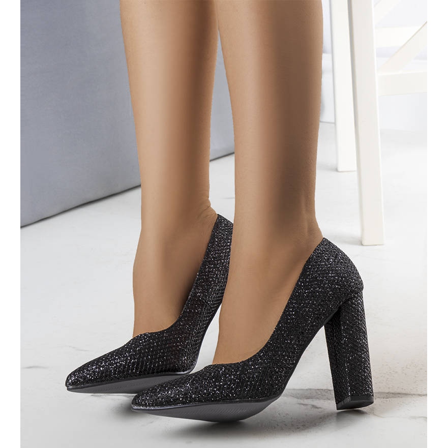 Pompele Belle de la producătorul BM sunt o propunere ideală pentru femeile care doresc să adauge eleganță și senzualitate ținutei lor. Aceste pompe elegante, într-o culoare clasică neagră, se disting printr-un finisaj frumos cu sclipici, care le oferă o strălucire unică.