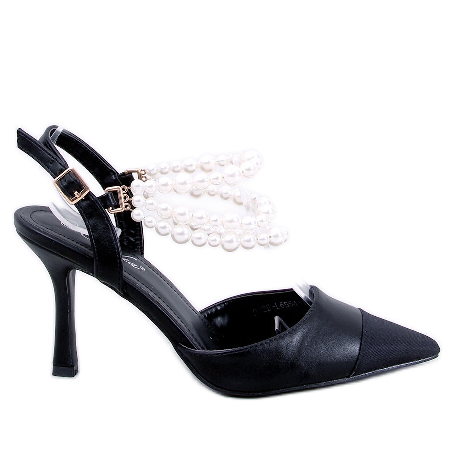 Inna marka Pompe cu toc deschis cu perle Harmony Black negru