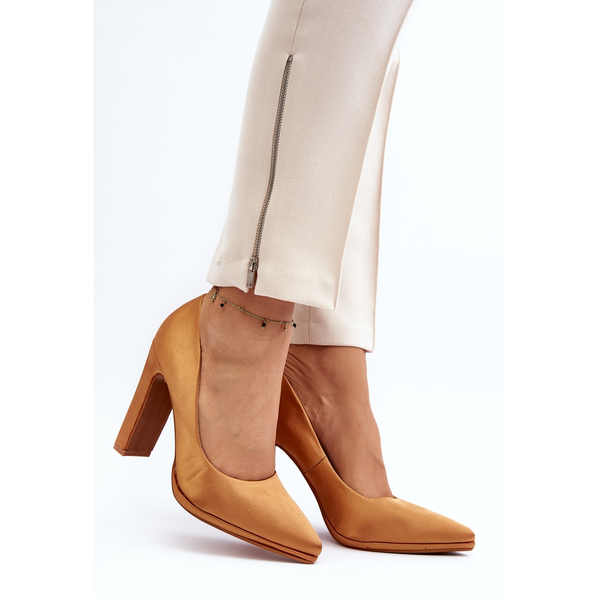 Materialul din care sunt fabricați pompele este o țesătură textilă de înaltă calitate, care imită perfect satinul, adăugând un aspect luxos pantofilor. Culoarea unică „CAMEL” propusă de producător este o nuanță universală de maro care se potrivește cu multe culori și este ușor de integrat în diverse stiluri.