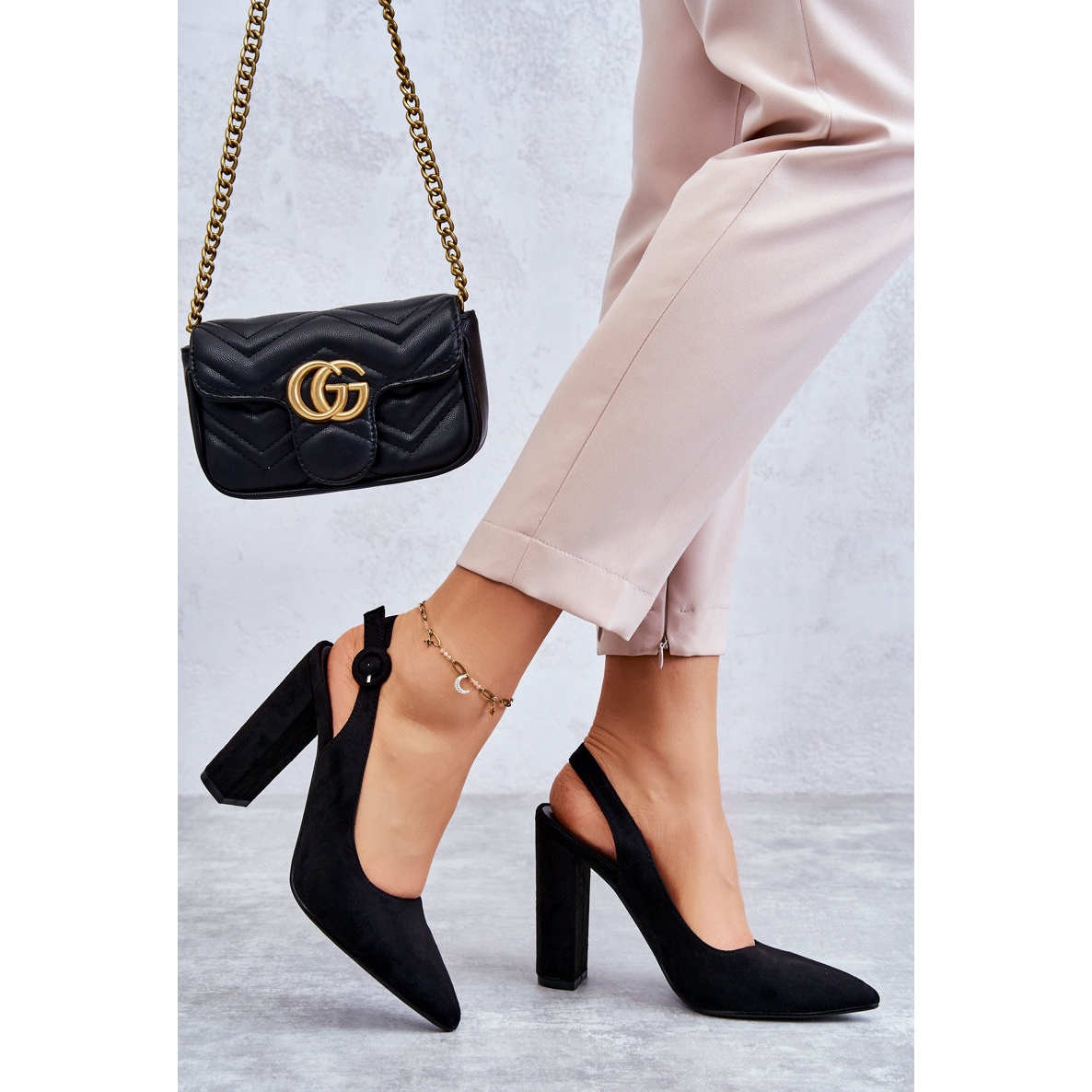 Pompele sunt prinse în jurul gleznei cu o curea reglabilă cu cataramă, care permite o potrivire perfectă la orice picior. Fabricat din piele de căprioară ecologică, iar branțul din piele ecologică asigură confortul de purtare pe tot parcursul zilei. Tocul deschis adaugă lejeritate și eleganță, creând un aspect elegant.