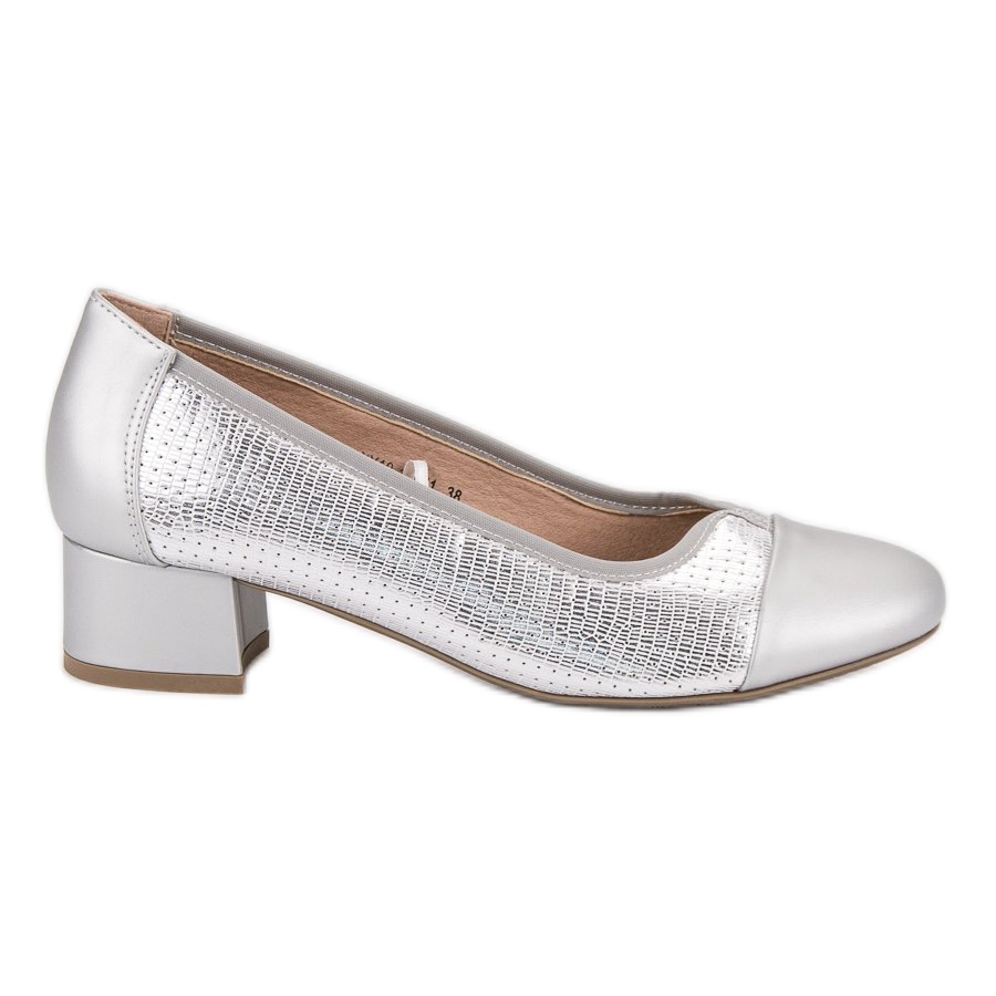 Pompele plate VINCEZA în culoarea gri sunt o combinație perfectă de eleganță și confort pe care fiecare femeie ar trebui să o aibă în colecția ei. Realizați din piele naturală de înaltă calitate, acești pantofi se remarcă printr-o nuanță argintie subtilă care le conferă o strălucire unică.