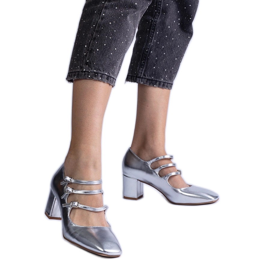 Inna marka Pompe de argint pe un post cu catarame metalice decorative
