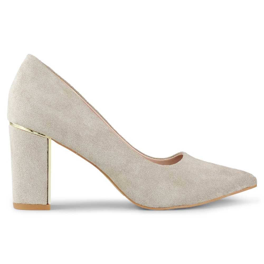 Pompe de femei din piele de căprioară strălucitoare pe un post confortabil - bej