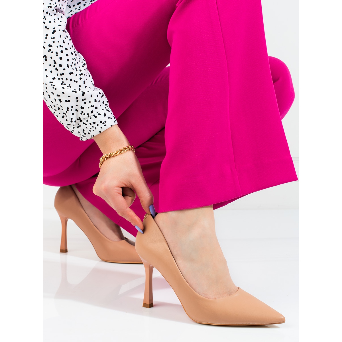 Pompele Vinceza sunt perfecte atât pentru sărbători, cât și pentru ieșirile de zi cu zi. Călcâiul lor este încorporat și rigidizat, ceea ce asigură stabilitate și confort atunci când este purtat. Datorită fundului plat și neted, mișcarea cu acești pantofi este o plăcere pură. Degetul rotund adaugă subtilitate, iar înălțimea tocului de 9 cm face ca fiecare femeie să se simtă mai înaltă și mai încrezătoare.