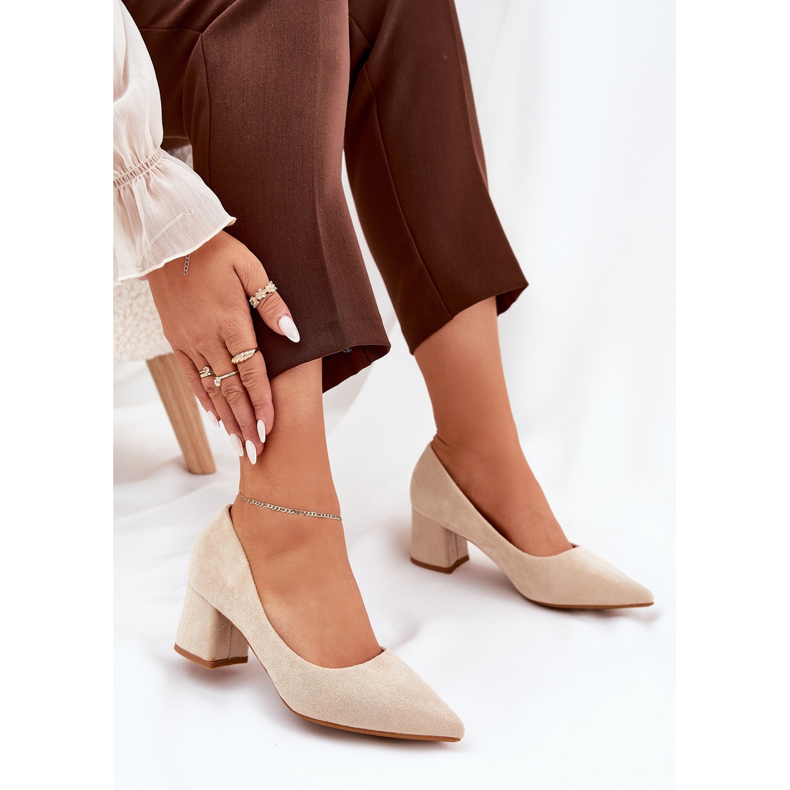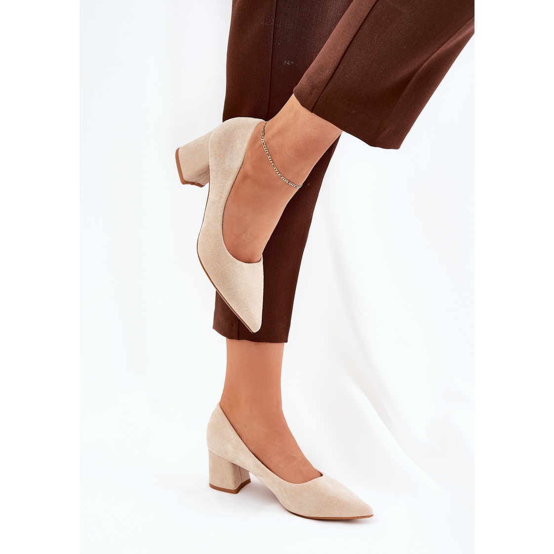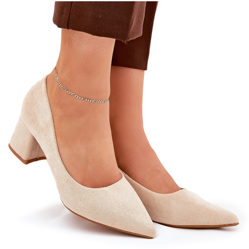 Descoperiți eleganța și confortul în pompele noastre pentru femei bej cu degetele de la picioare ascuțite pe un post stabil. Acești pantofi din piele de căprioară sunt o propunere ideală pentru toate ocaziile - de la părți la întâlniri de afaceri care necesită un aspect elegant de la tine. Designul lor minimalist vă va sublinia perfect figura, iar înălțimea călcâiului de 5,5 cm te face nu numai că arăți grozav, dar te simți și confortabil toată ziua.