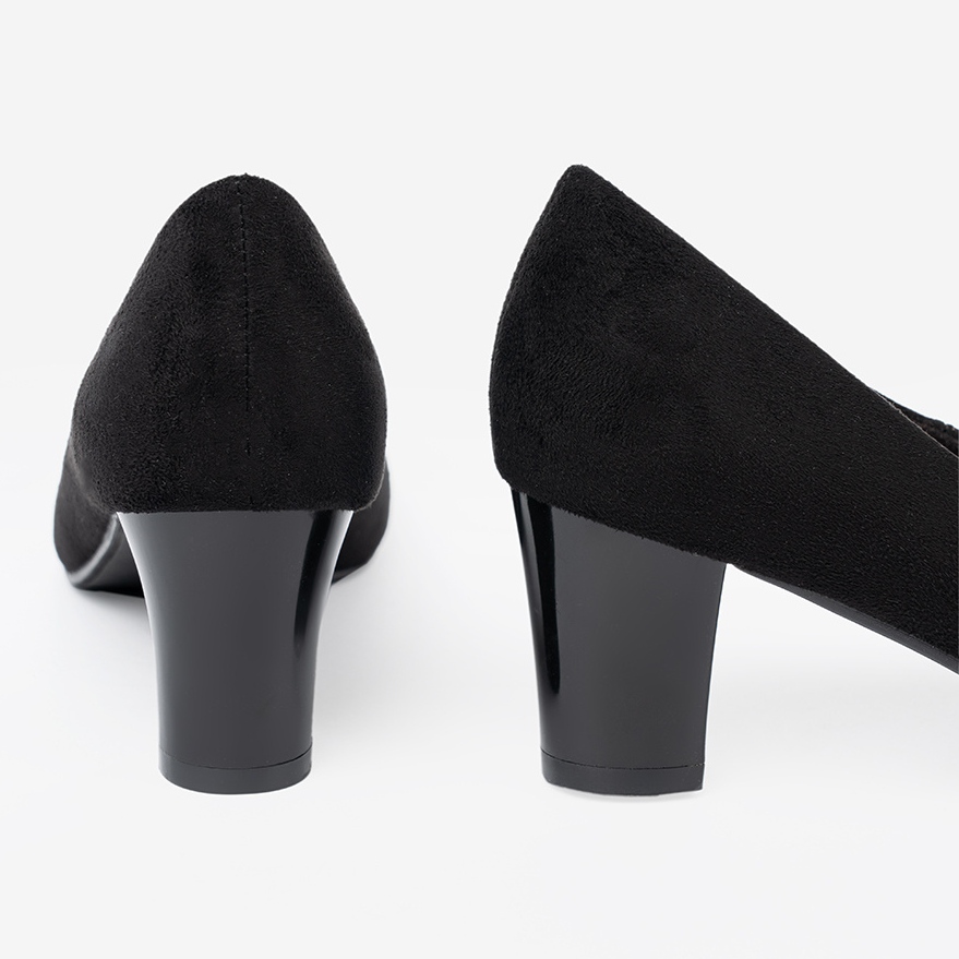 Înălțimea călcâiului de 6 cm, pe un post stabil, face ca pompele să fie o alegere excelentă atât pentru stilizări de zi cu zi, casual, cât și pentru seturi mai formale, elegante. Datorită inserției, a pune și a scoate pantofii este rapid și confortabil.