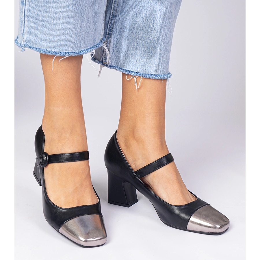 Detalii: Pompe de femei negre cu un vârf argintiu negru