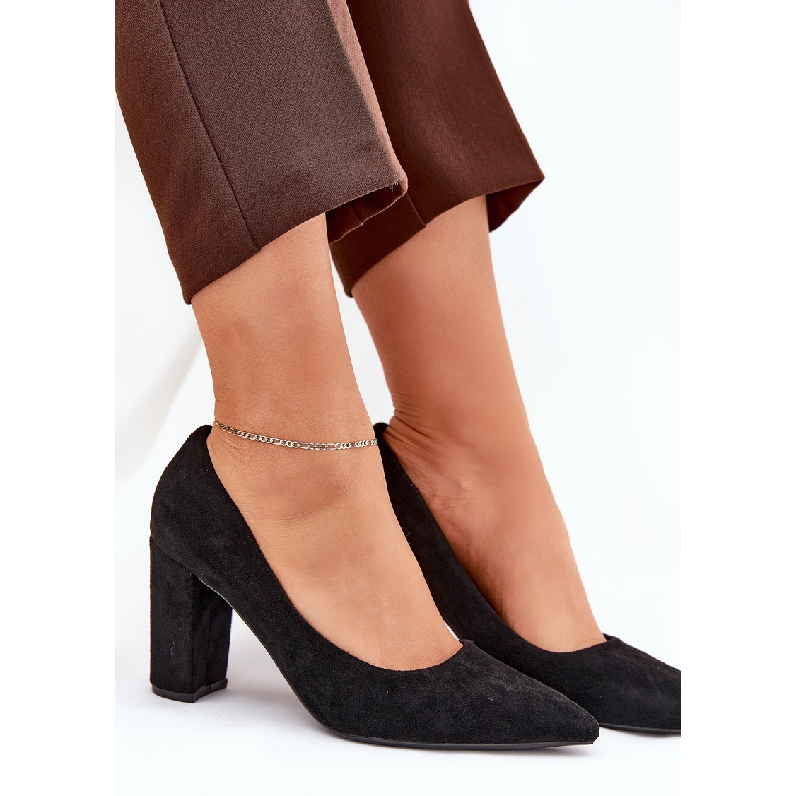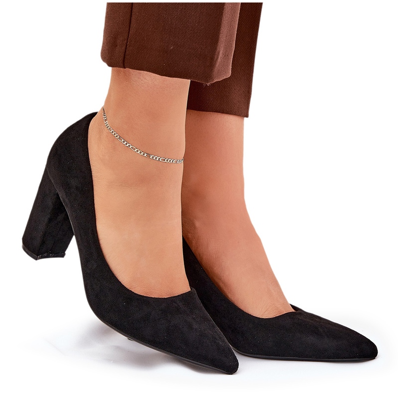 Pompele Eco Suede pe Black Post este o alegere excelentă pentru fiecare femeie elegantă care dorește să combine confortul cu stilul la modă. Fabricate din piele de căprioară Eco de înaltă calitate, aceste pompe se disting printr -o bară solidă, înălțime de 9 cm, ceea ce asigură stabilitatea și confortul la purtare.