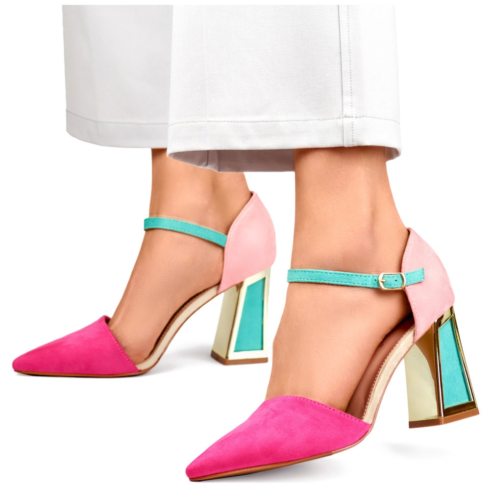 Pompele sunt caracterizate în primul rând de o culoare roz frumoasă, care, combinată cu accente verzi suplimentare, le adaugă originalitate și caracter. Acest set de culori va funcționa excelent primăvara și vara, subliniind pielea maro și adăugând strălucire stilurilor de zi cu zi și de seară.