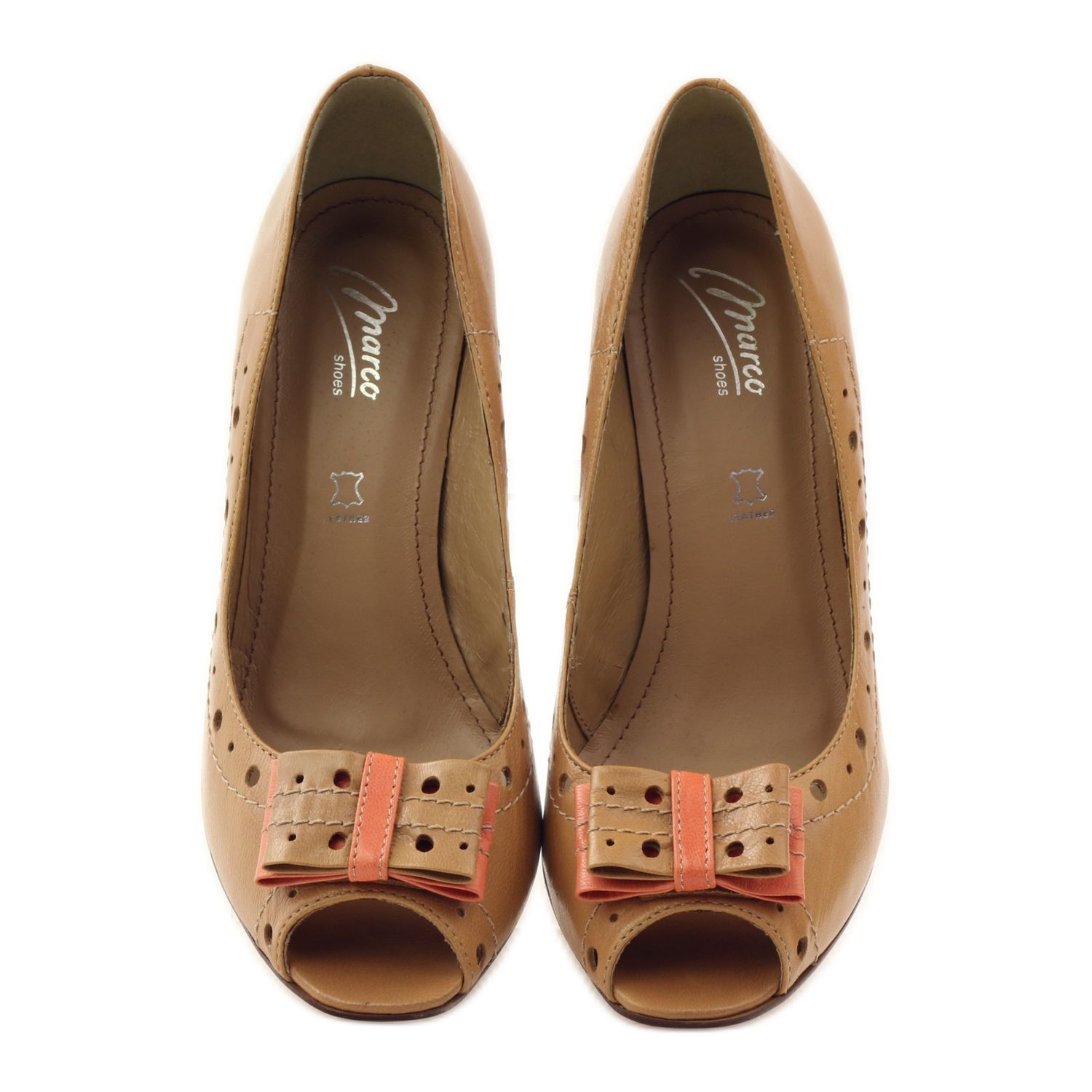 Marco Pompe din piele cu fundita Marco 1932 maro portocale