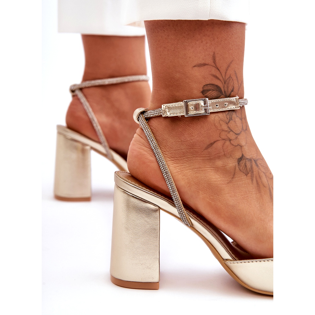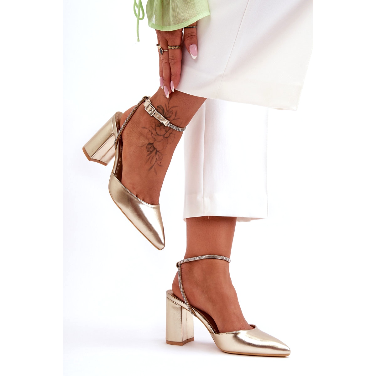 Detalii: Pompe din piele ecologică cu curea decorativă, Golden Lirosa de aur