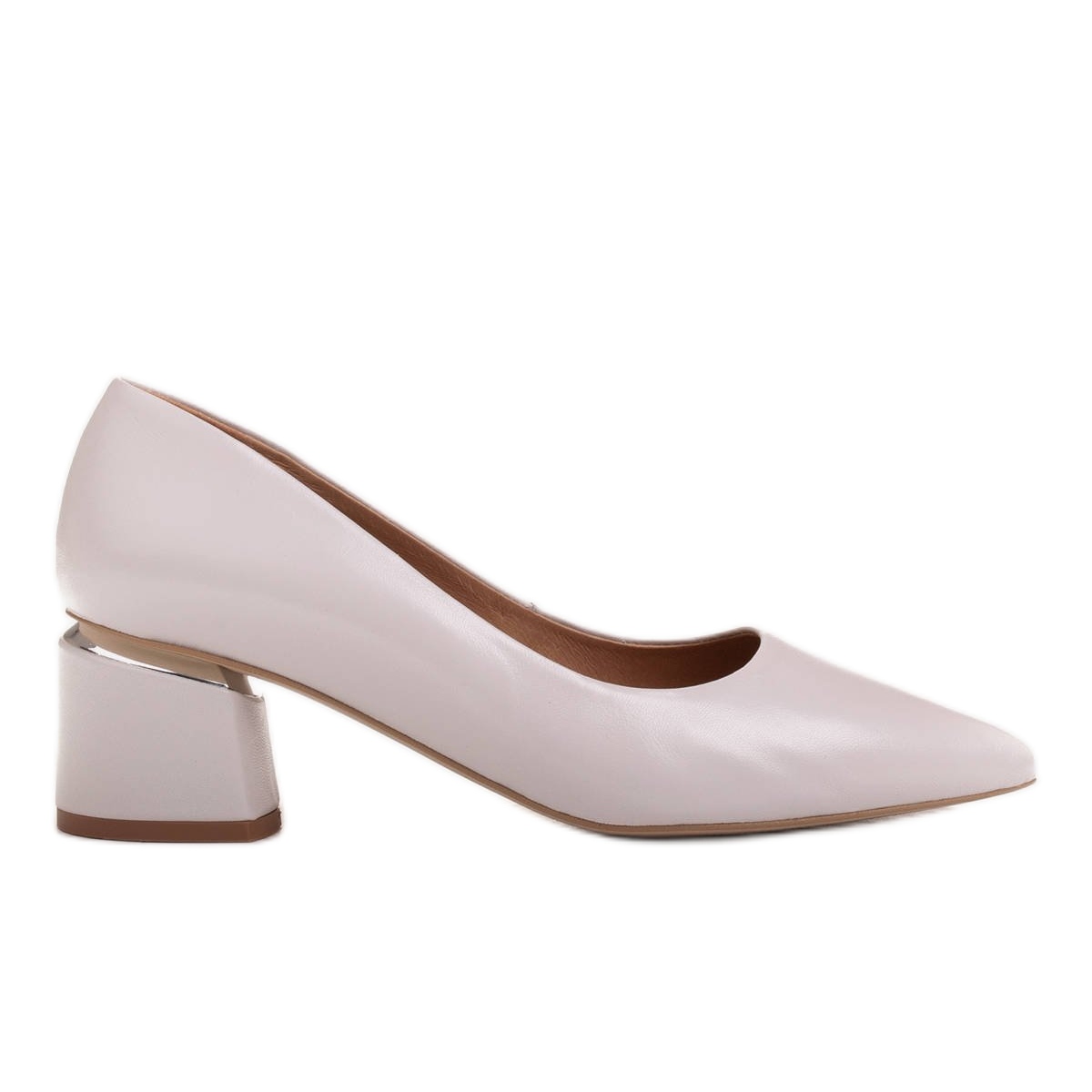 Pompele au un vârf ascuțit și sunt fixate pe un toc bloc stabil de 5 cm, care asigură confortul purtării pe tot parcursul zilei. Interiorul pantofilor este finisat cu piele naturala, ceea ce le creste si mai mult durabilitatea si confortul. Talpa din material sintetic de înaltă calitate garantează o aderență adecvată și are un impact pozitiv asupra confortului fiecărui pas.