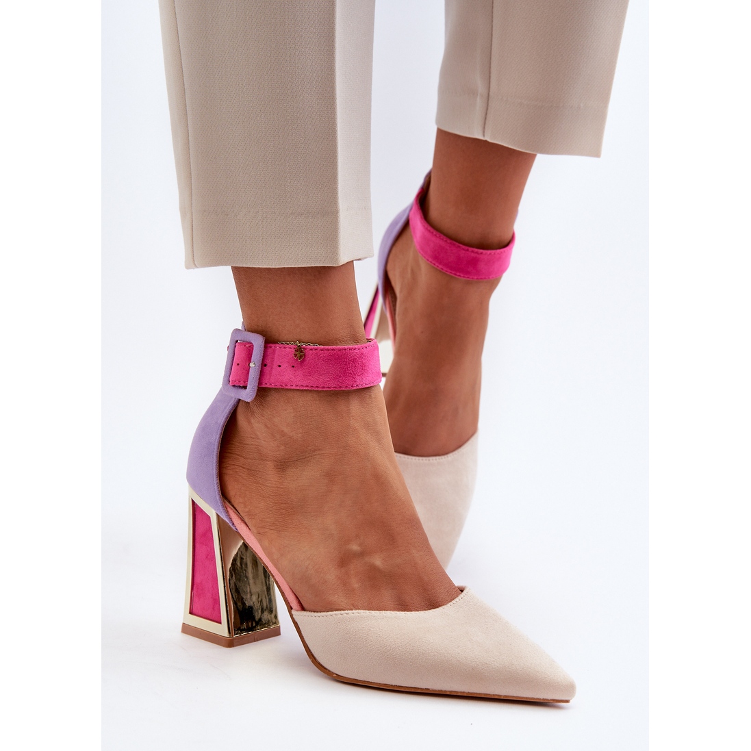 Pompele din piele intoarsa pe toc inalt Lodho multicolor sunt alegerea perfecta pentru o femeie moderna care vrea sa combine eleganta cu confortul. Fabricate din piele de căprioară ecologică, aceste pompe se remarcă nu numai prin designul lor atractiv, ci și prin manopera de înaltă calitate. Un toc stiletto cu un accent de oglinda le confera un stil unic, facandu-le un accesoriu perfect pentru diverse ocazii.