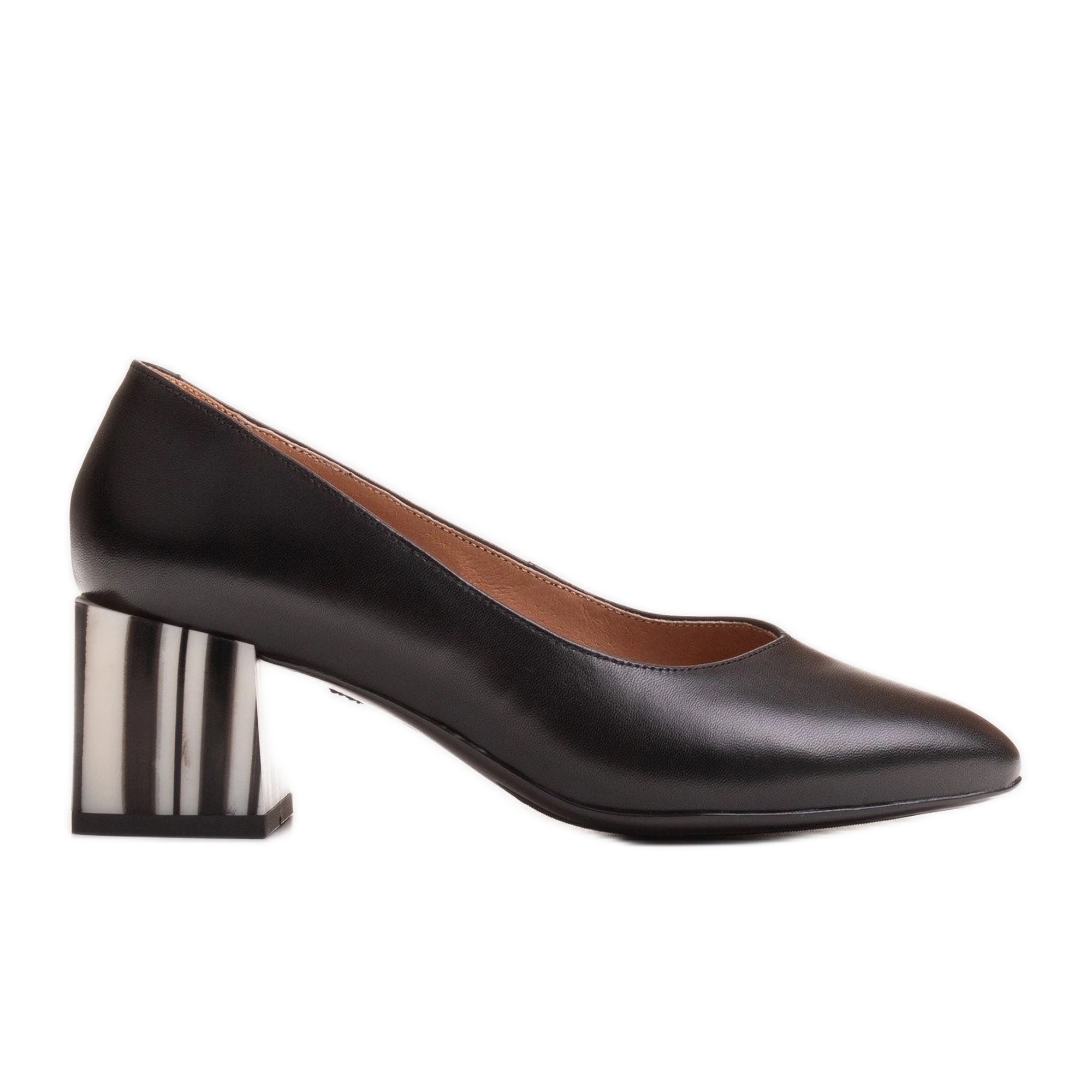 Pantofi Marco - Pompe din piele neagră cu călcâi cu dungi zebra