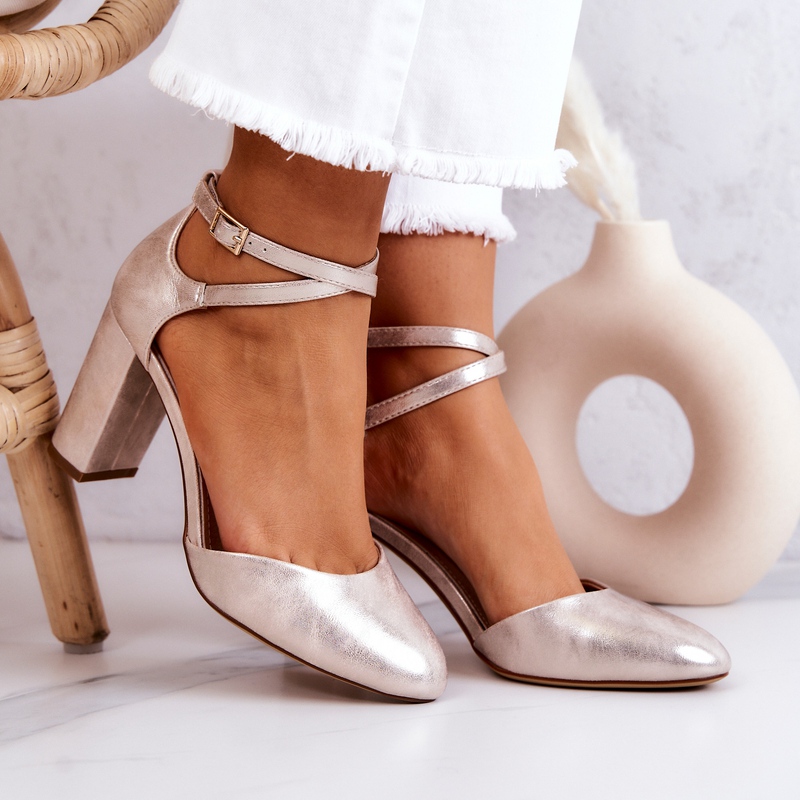 Descoperă extraordinarii pantofi din piele cu toc Sergio Leone SK851 într-o culoare aurie elegantă, care vor completa perfect stilul oricărei femei. Fabricate din piele ecologică de cea mai înaltă calitate, acestea combină stilul și confortul la purtare. Închiderea cu cataramă cu o curea reglabilă garantează o potrivire perfectă pe picior, iar branțul moale din piele naturală vă face să vă simțiți confortabil picioarele chiar și după ore lungi de mers.