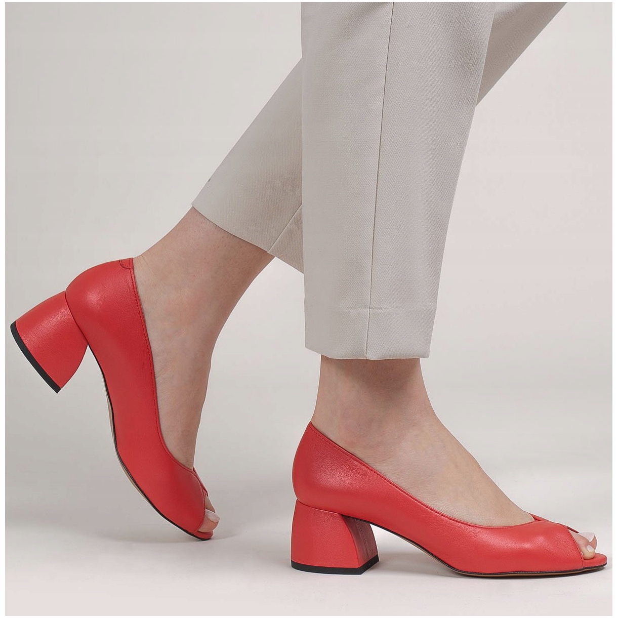 Marco Shoes Marco Shoes Pompe din piele roșie 1576P cu toc stabil roșu