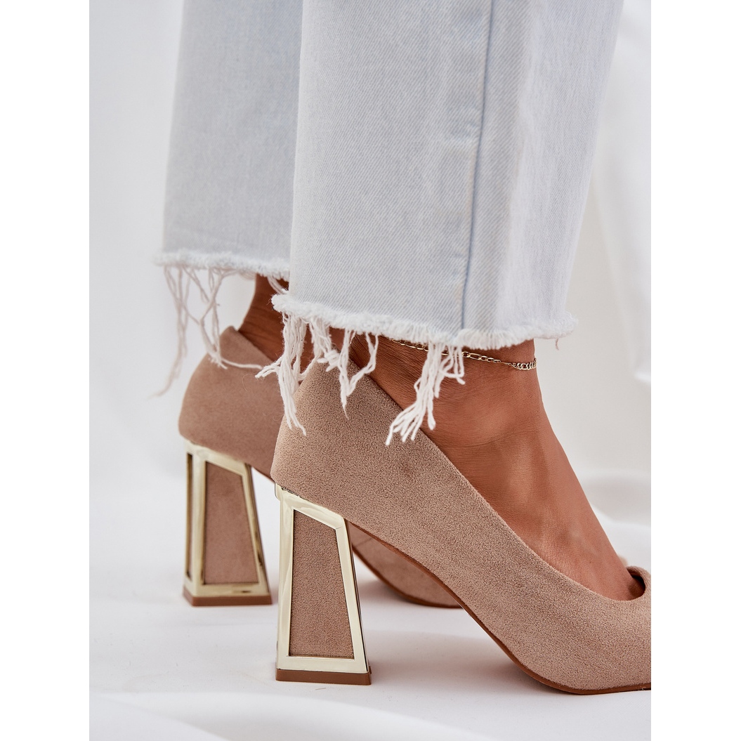 Inna marka Pompe elegante pe stâlpul degetului întunecat bej