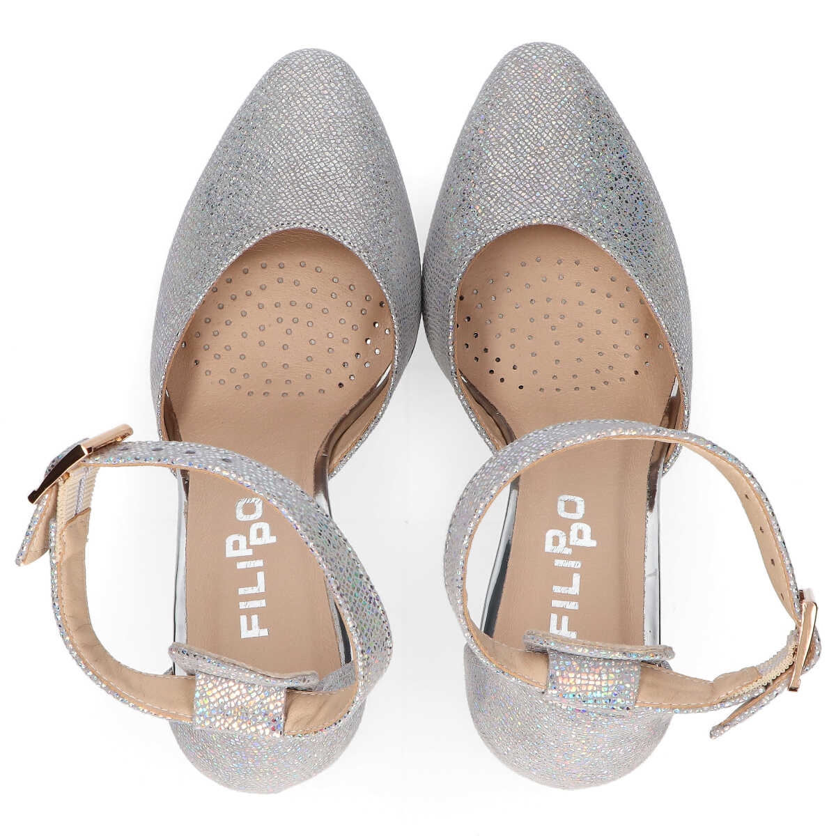 Pompele Filippo 2059/OBL S-90 într-o culoare elegantă argintie sunt o alegere perfectă pentru femeile care apreciază stilul și confortul. Acești pantofi unici de la renumitul brand Filippo combină designul modern cu elementele clasice, ceea ce îi face perfecți pentru ocazii speciale și ieșirile de zi cu zi.
