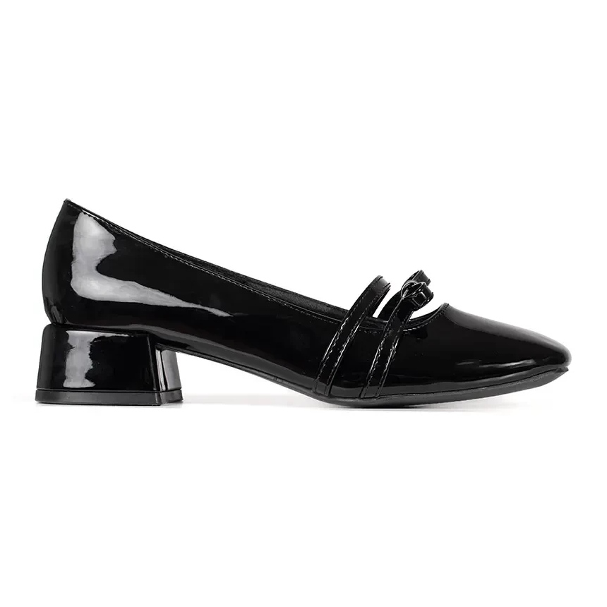 Detalii: Pompe lacuite negre cu tocuri joase negru