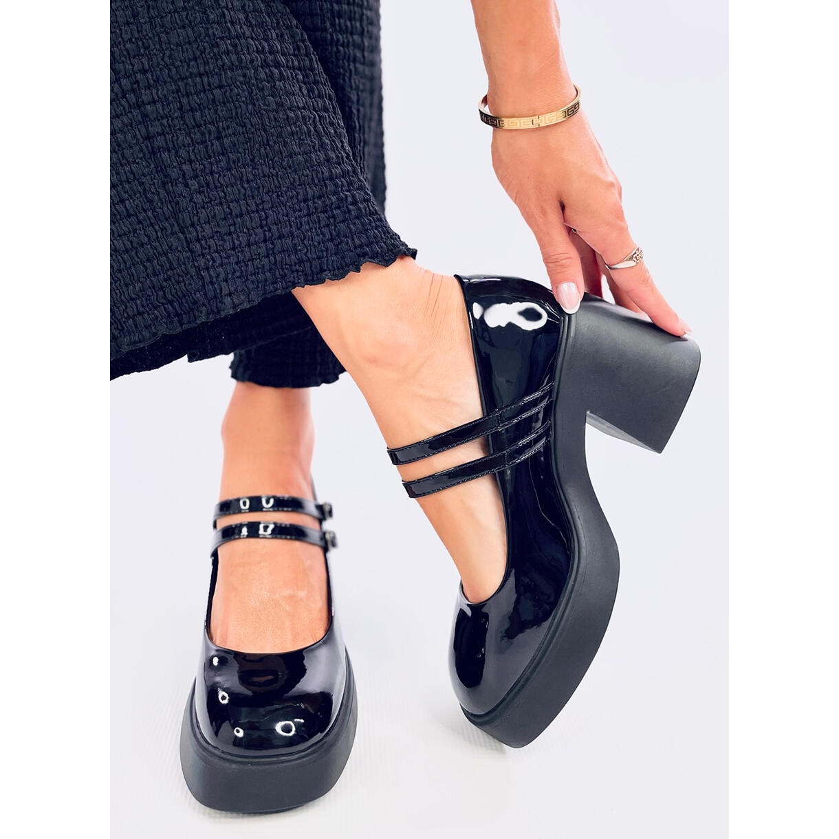 Fabricate din piele ecologică lăcuită, pompele se disting nu numai prin aspectul estetic, ci și prin materiale de înaltă calitate. Nasul rotund asigură aranjarea anatomică a piciorului, ceea ce se traduce prin confort în timpul uzurii pe termen lung. Un avantaj suplimentar este cățelul de pe căptușeală, care nu numai că adaugă caracter, dar și stabilizează piciorul, ceea ce face ca acești pantofi să fie și mai practici.