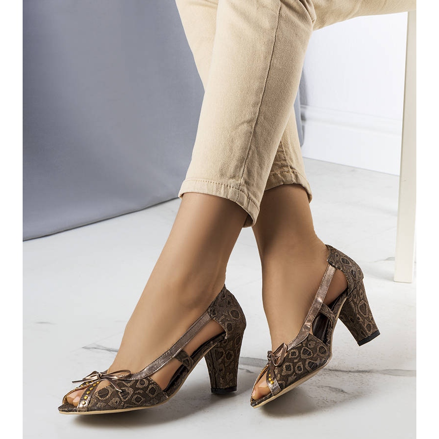 Detalii: PA1 Pompe maro cu toc înalt de la Lavra cupru
