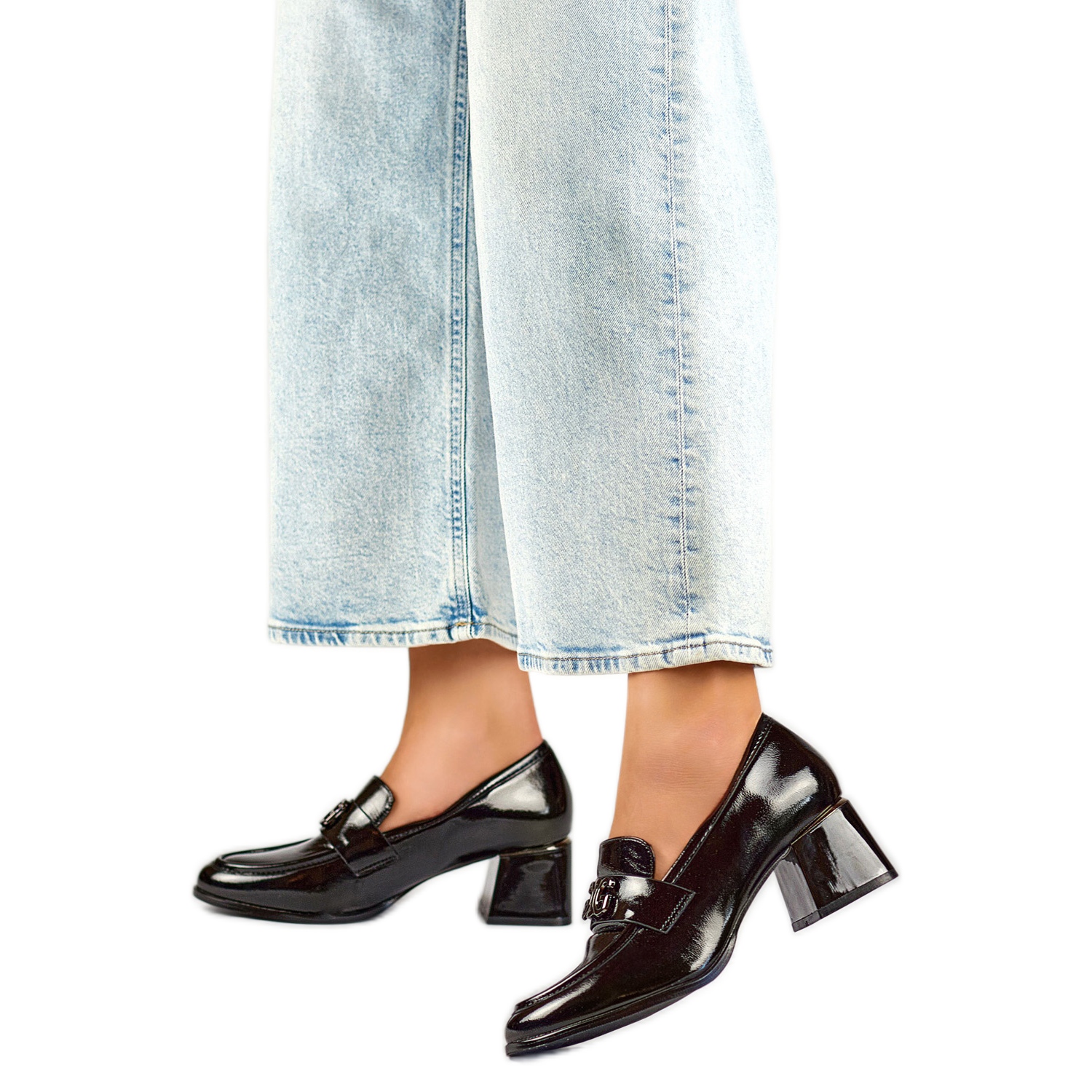 Pompele model GD-FL475B Black sunt o propunere unică pentru doamnele elegante care apreciază atât stilul, cât și confortul. Confectionati din piele ecologica lacuita, acesti pantofi negri se incadreaza perfect in ultimele tendinte de moda. Varful rotund clasic si tocul stabil de 7 centimetri asigura confortul de purtare pe tot parcursul zilei, ceea ce le face o alegere perfecta pentru diverse ocazii - de la cele de zi cu zi la cele mai formale.